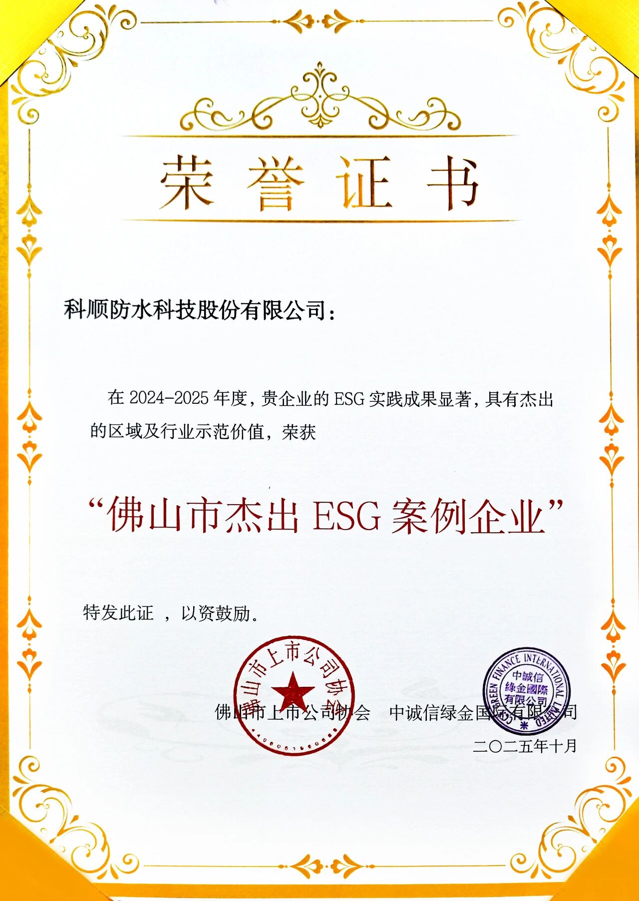 此次獲獎,既是佛山市政府與行業對科順ESG工作的高度認可,更是對公司未來深化可持續發展的激勵。