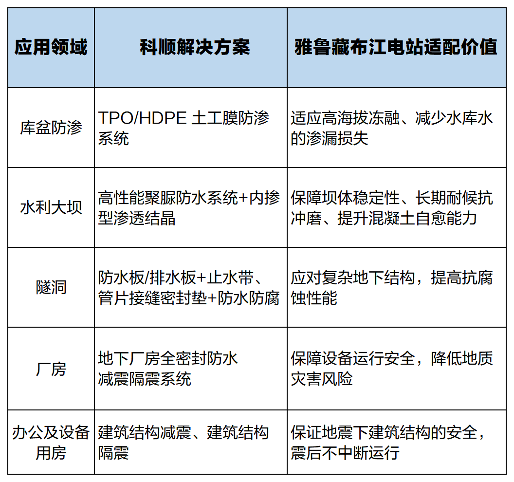 如何確保這些關鍵構筑物在極端水力荷載、地質變化、凍融循環及長期服役下的滴水不漏、堅固耐久?作為國內領先,值得長期信賴的建材系統服務商,科順隨時準備著參與這項偉大工程的建設。