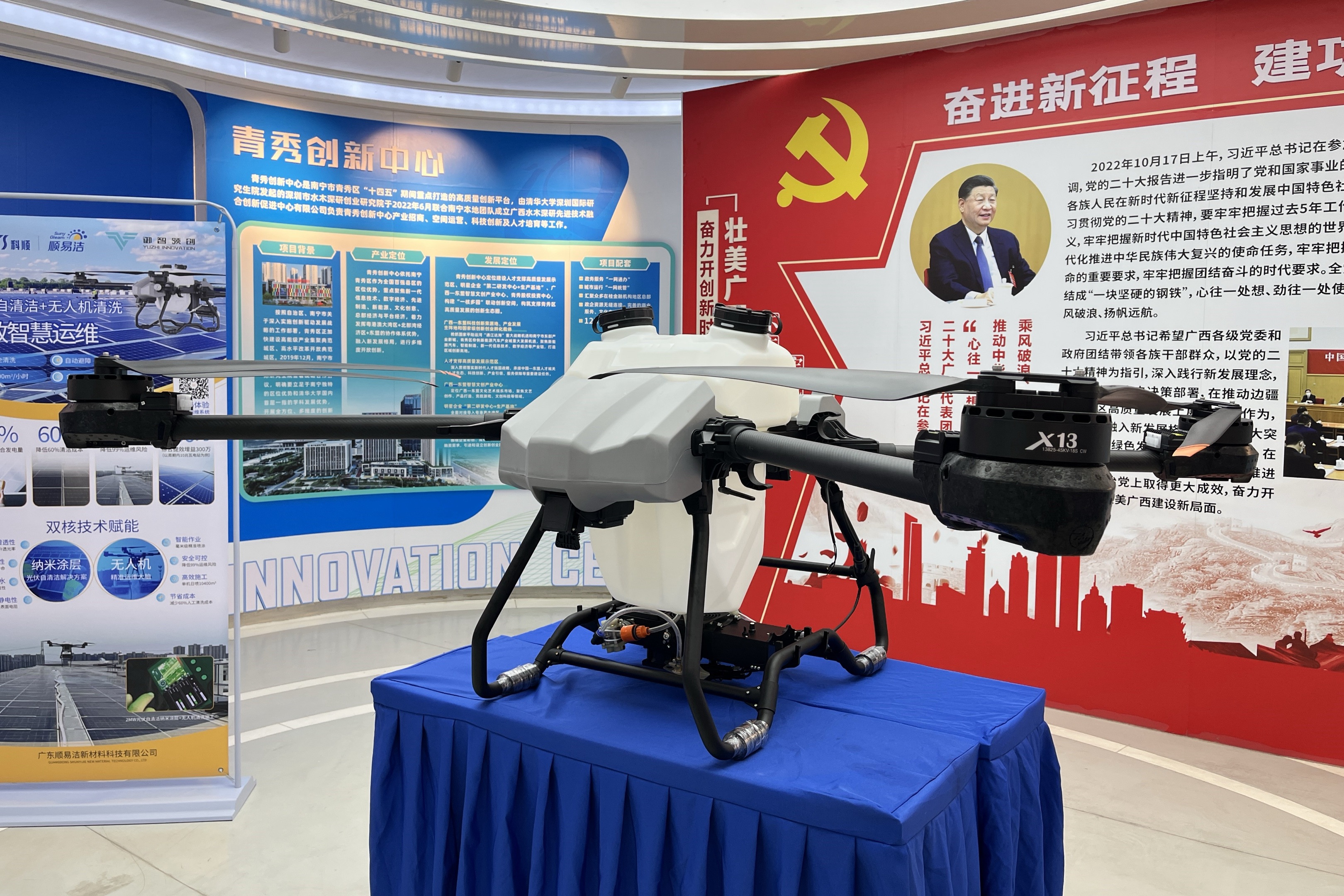 御智領創董事長謝小陵則聚焦產品落地能力。他特別強調,兩款無人機均由桂林航天工業學院龍詩科博士團隊研發,歷經數百次戶外測試,結合順易潔納米涂層后,光伏清潔效率得到大幅度提高,真正地提供“管用”的技術。