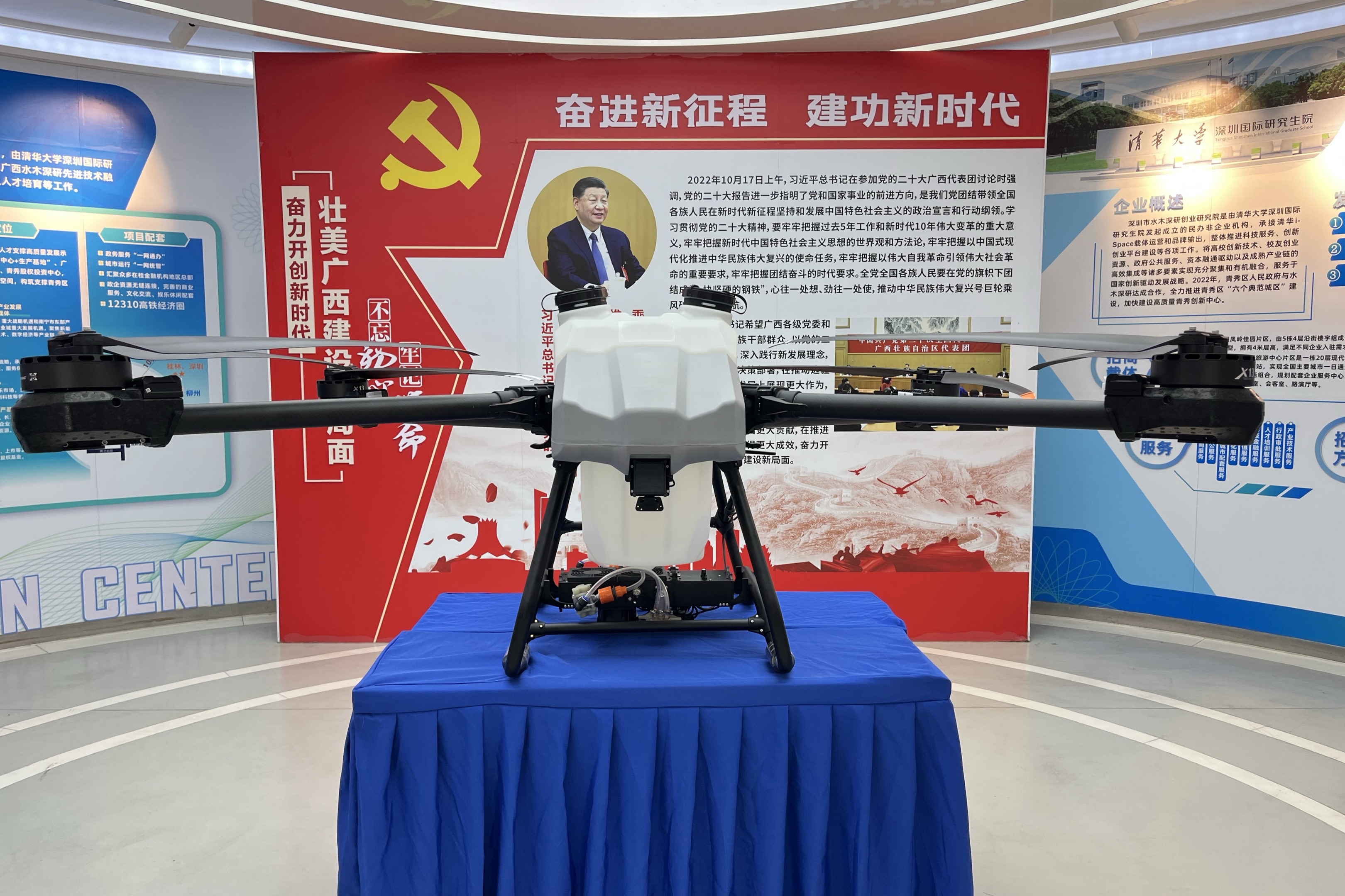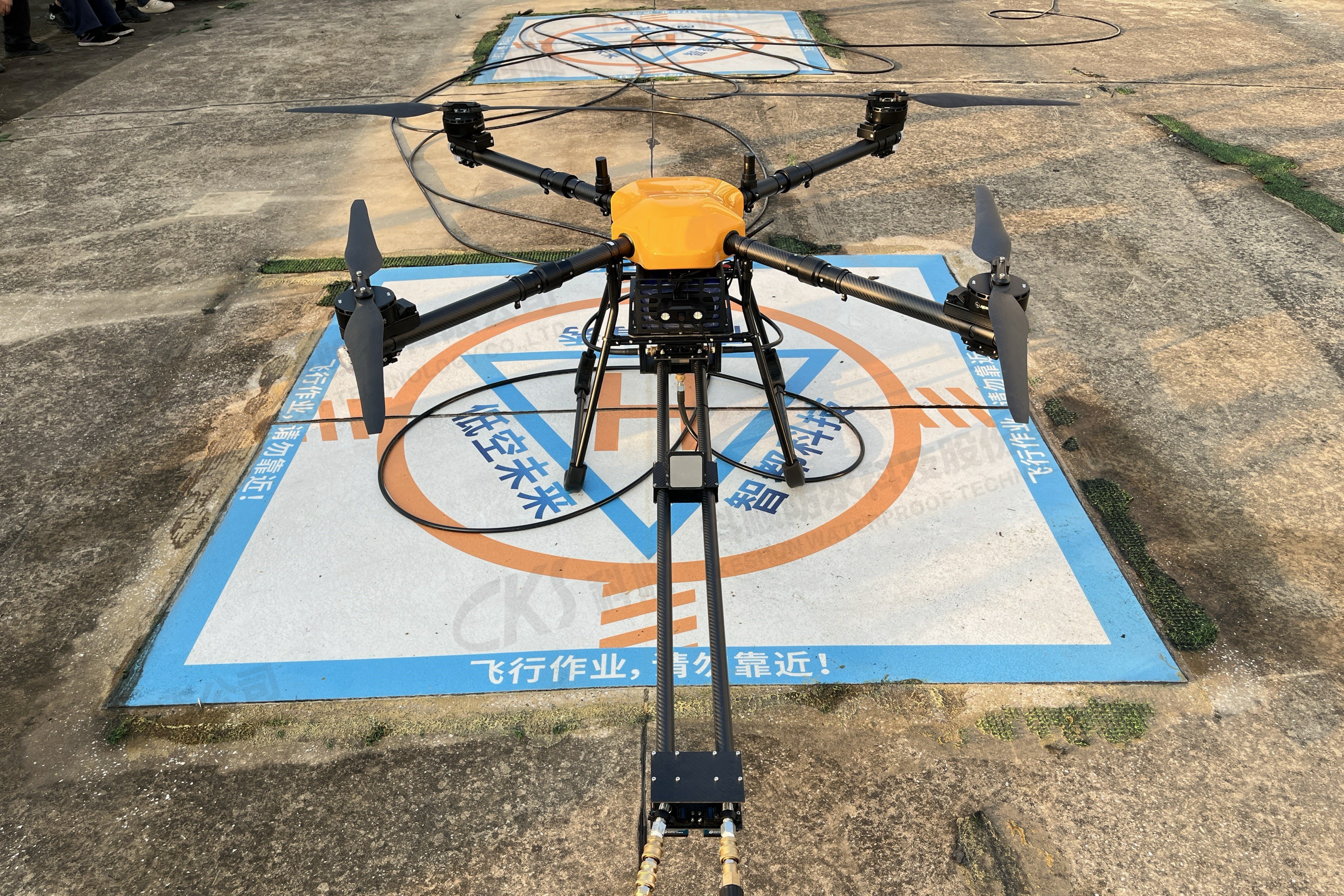 系留無人機解決方案,無人機直接接地面供水水管,不受水箱容量限制
