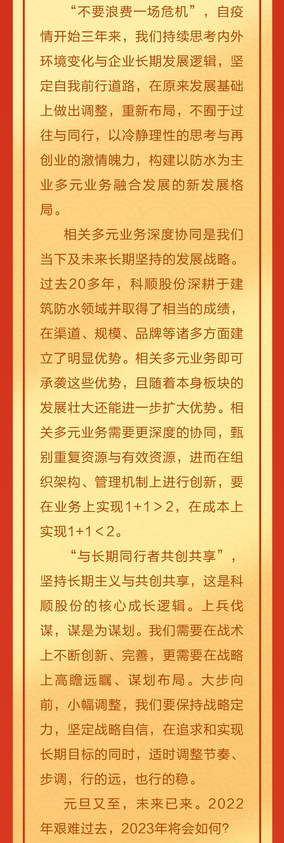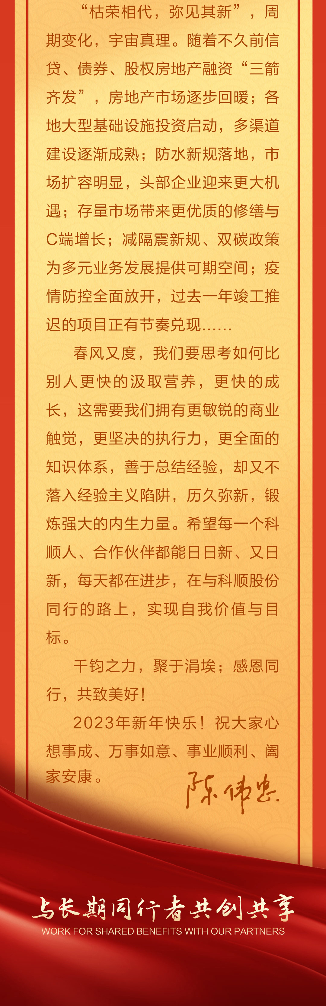 上一篇: 科順股份2022年終總結:守護曙光,相信“相信”的力量!