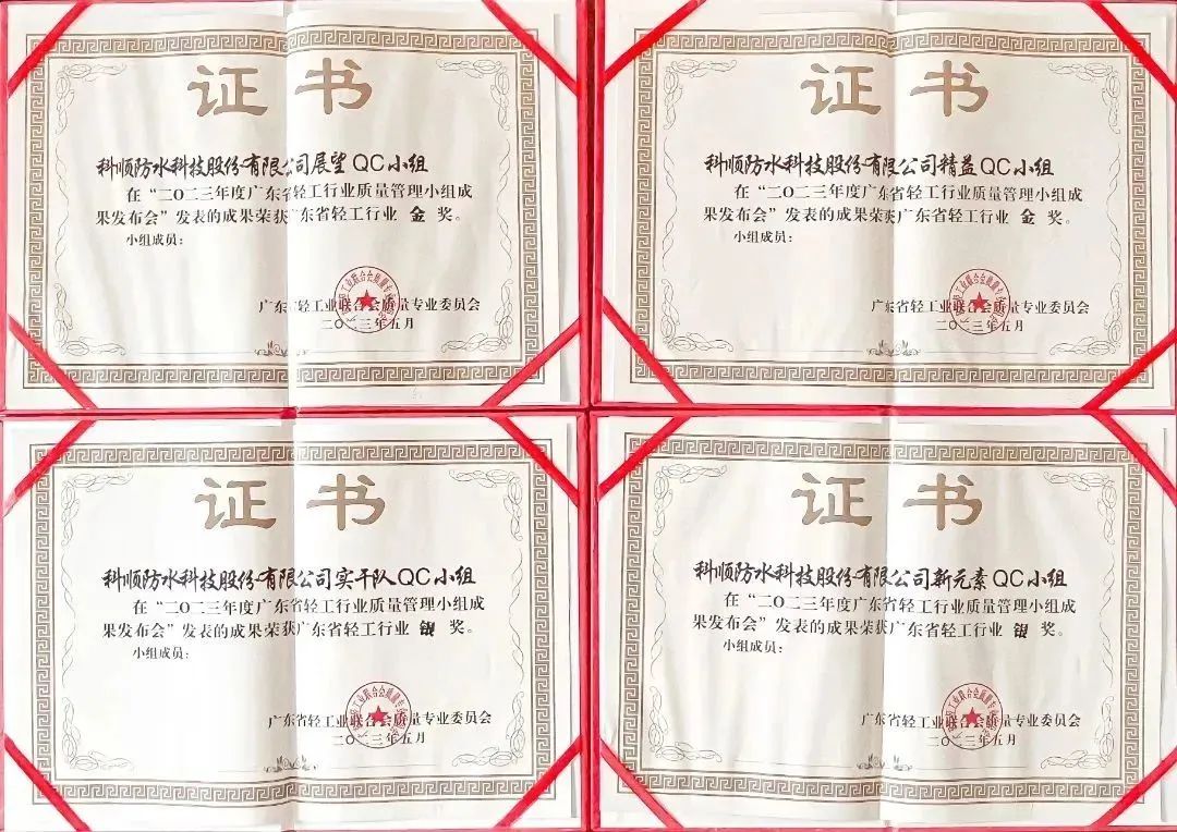 在2023年度廣東省輕工業優秀質量管理小組活動成果發布暨交流會中,科順股份收獲“2金2銀”。