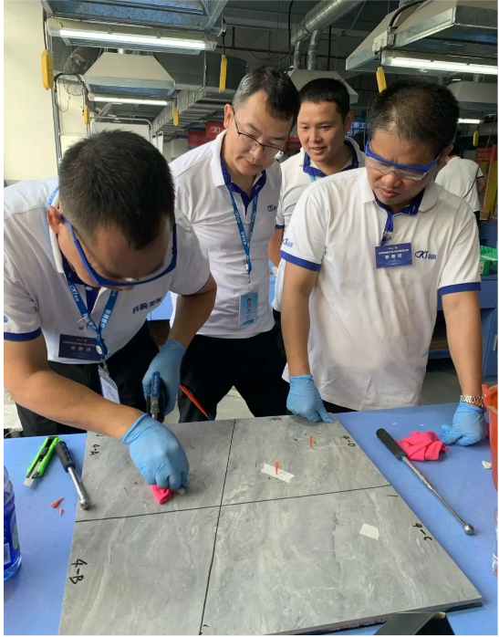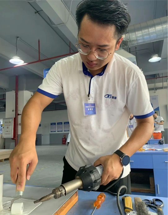 決賽現場上,選手們操作有序,動作嫻熟 ,充分展現出技能型人才的風采。經過一番激烈角逐,在考評組的嚴格考評下,最終楊琛彪 、陳香志 、葉坤奪得高分子 PVC 焊接項目的冠、亞、季軍;黃小康 、陳佳琦、陳林獲得 噴涂施工項目的冠 、亞 、季軍;吳雨見、徐俊峰、丁貴奇則獲得了瓷磚修補項目的前三名。