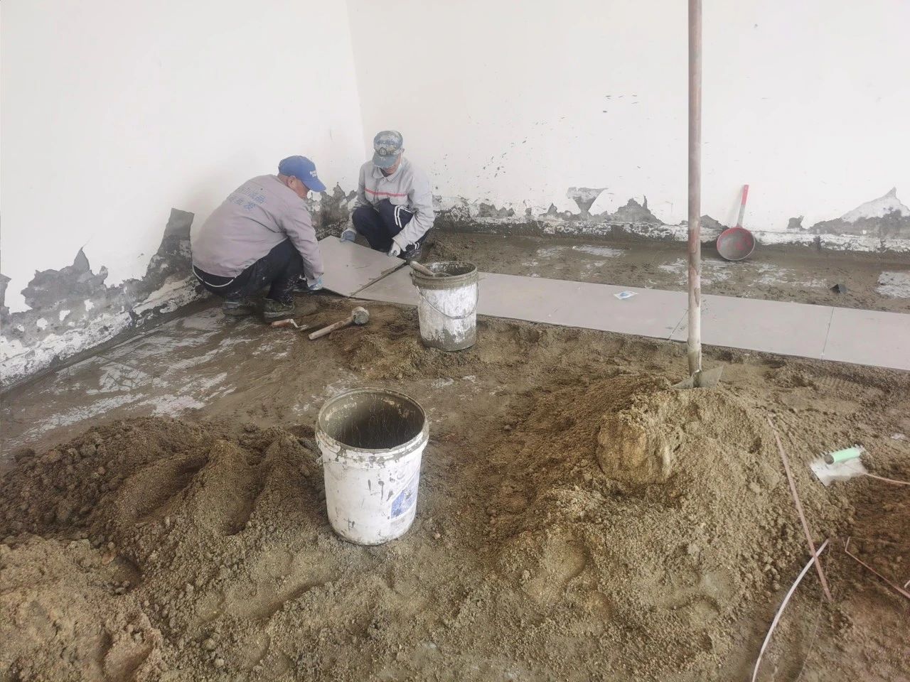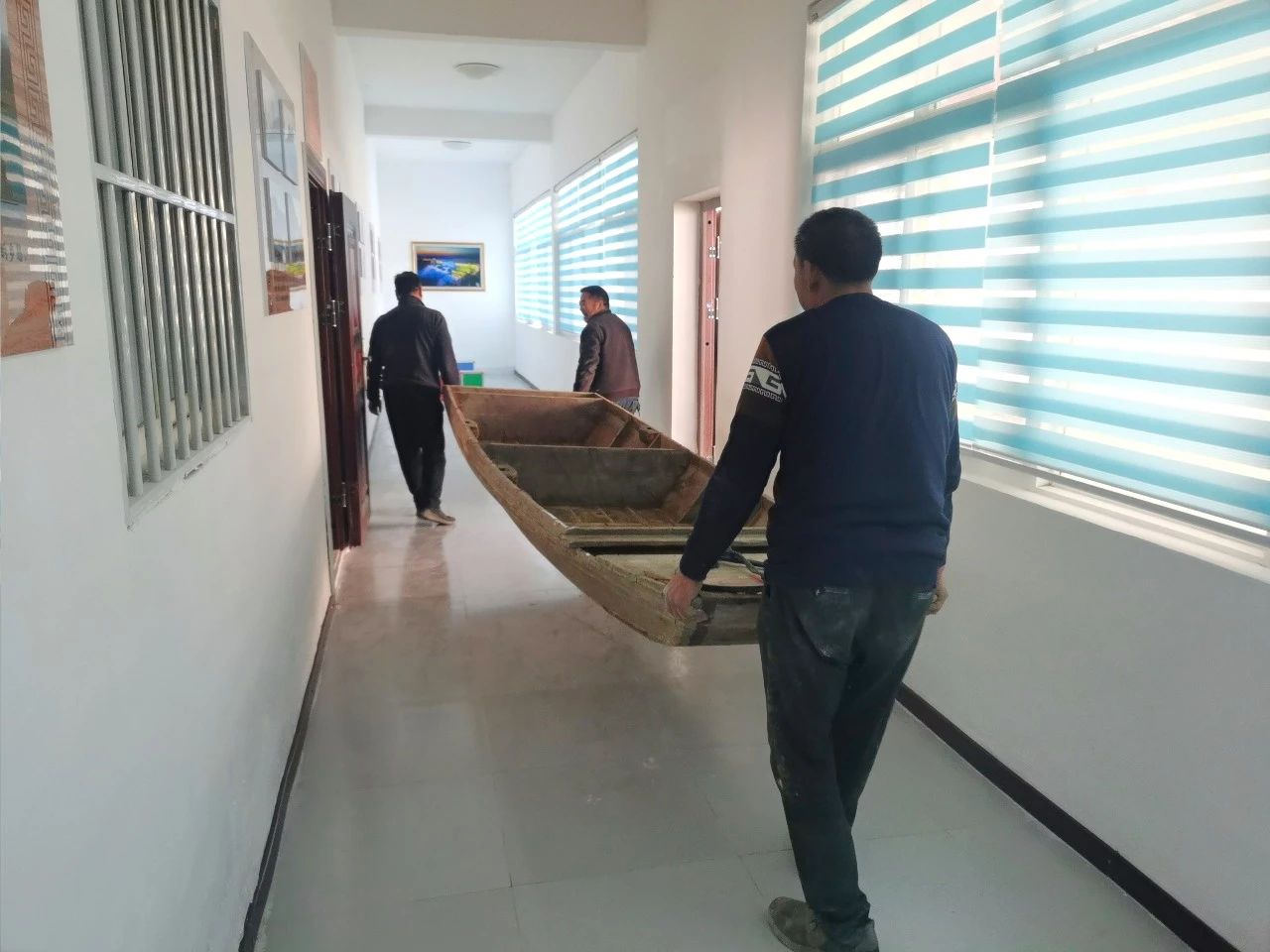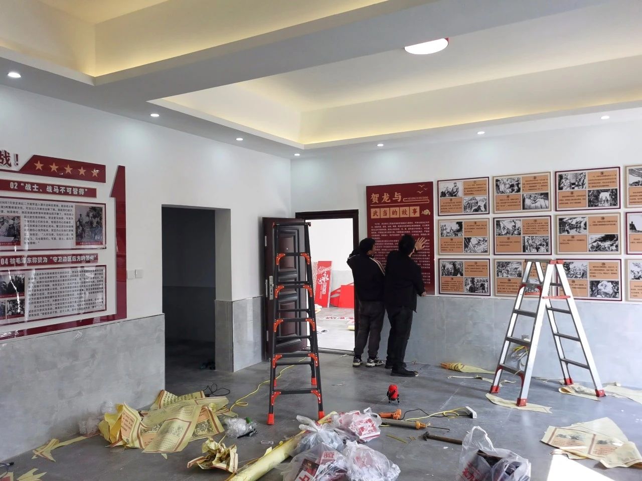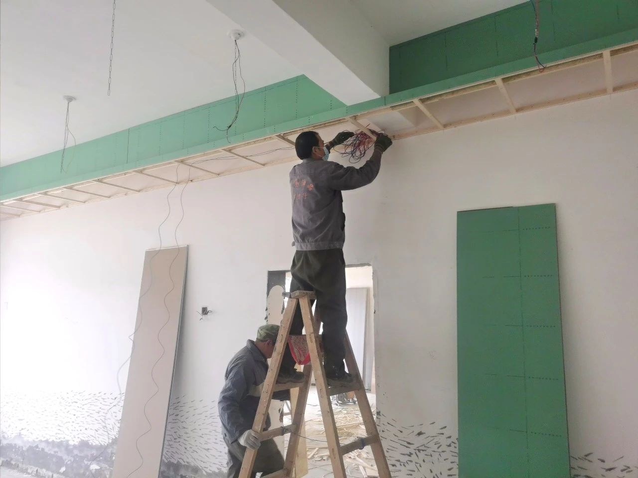 隨后,公益行動(dòng)迅速展開。施工團(tuán)隊(duì)首先進(jìn)行地面防水與地板鋪設(shè)工作,并對(duì)幾處大門進(jìn)行了改造,隨后進(jìn)行房屋吊頂、展柜制作,并加派人手粉刷墻體、安裝燈光裝飾。