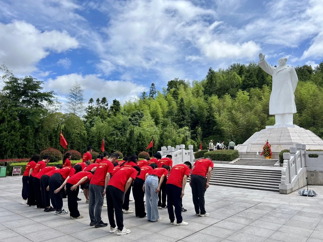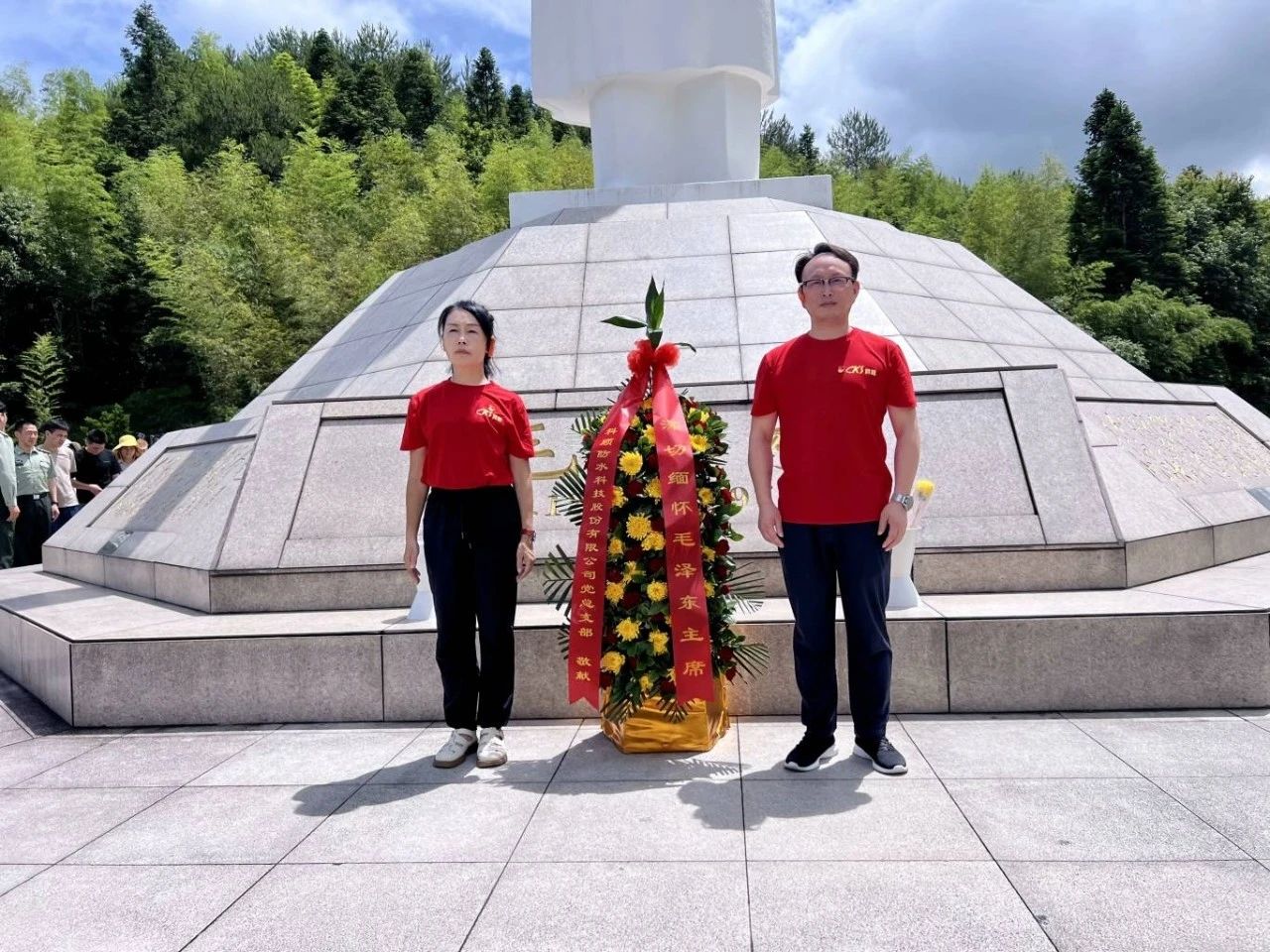 在毛澤東紀念碑前,科順股份黨總支部全體黨員莊嚴肅穆,向毛主席敬獻花籃、默哀鞠躬,致以深切哀思和崇高敬意。