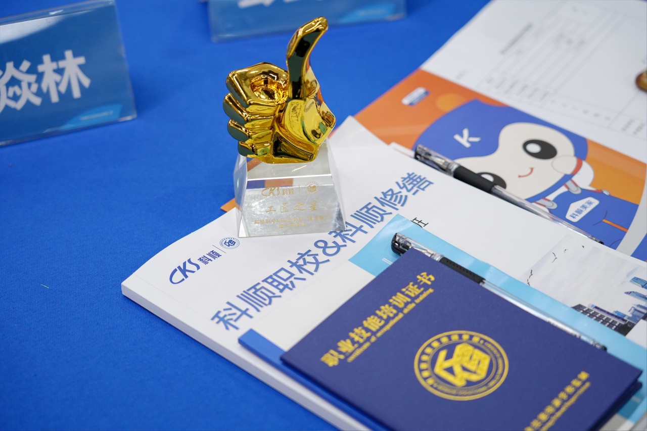 訓(xùn)練營(yíng)成員通過結(jié)業(yè)考核檢驗(yàn)學(xué)習(xí)成果。科順職校頒發(fā)優(yōu)秀學(xué)員證書,并依據(jù)綜合評(píng)定,授予卓越個(gè)人“工匠之星”、精銳團(tuán)隊(duì)“標(biāo)桿團(tuán)隊(duì)”獎(jiǎng)杯獎(jiǎng)牌。