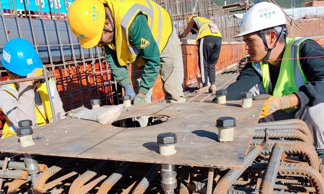 圖/隔震支座及預埋件安裝完畢,準備澆筑混凝土